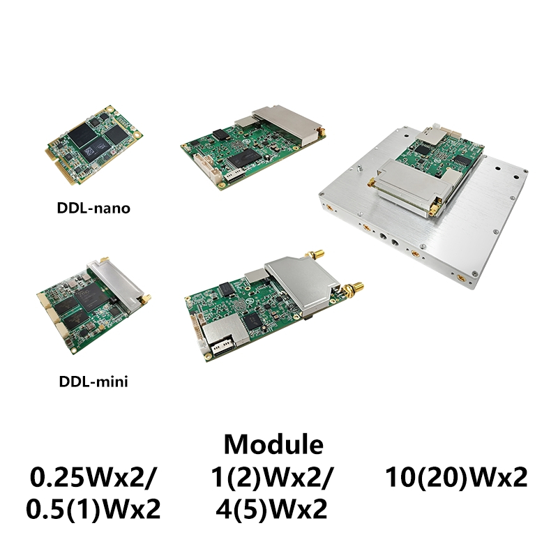 The new DDLmesh series wireless digital data link is a low-cost long-distance video&data transmission product with small size, light weight, 2×2 MIMO, complete functions and abundant frequency bands. DDLmesh series based on SDR software defined radio platform with 2×2 MIMO, it adopts Beamforming, Maximal Ratio Combining(MRC), Maximal Likelihood(ML) algorithm, low density parity check(LDPC) coding, intelligent frequency selection and autonomous frequency hopping technology to achieve strong radio frequency performance and strong anti-jamming.